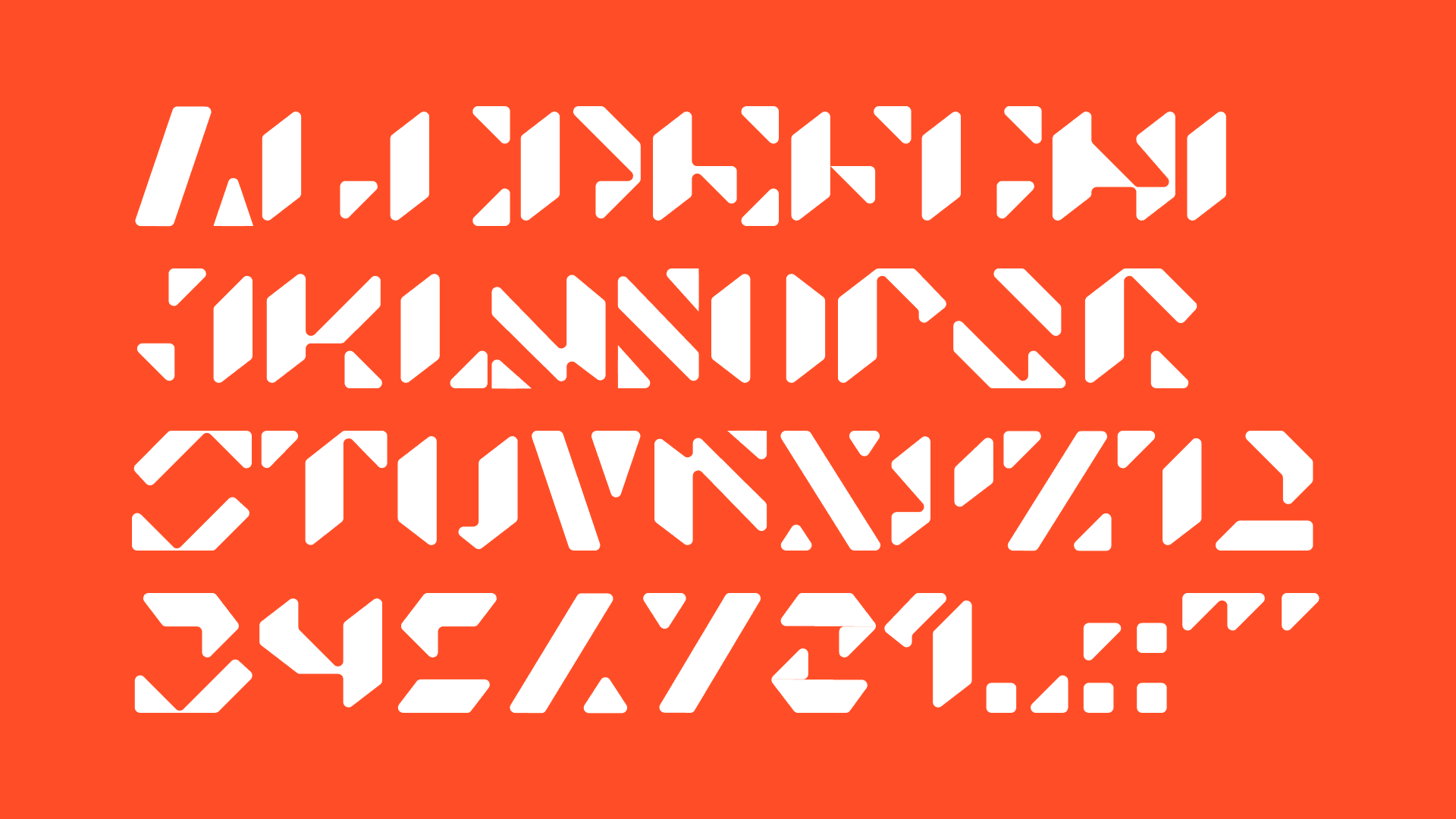 Modo Fraktur embraces symbiosis: letters lose meaning alone but gain clarity through unity. Its angular, geometric forms reframe gothic blackletter through a modern lens, reflecting the ongoing contemporary evolution of style and visual language.